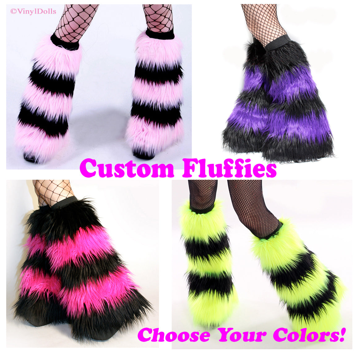 Custom Striped Fluffies - Create your own unique pair. Choose your colors from the drop-down menu. See the second photo for an example of how to pick your colors and the third photo for available colors.
